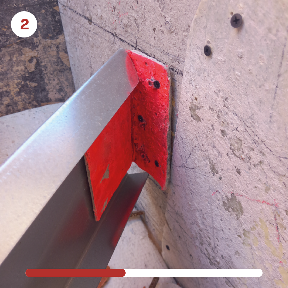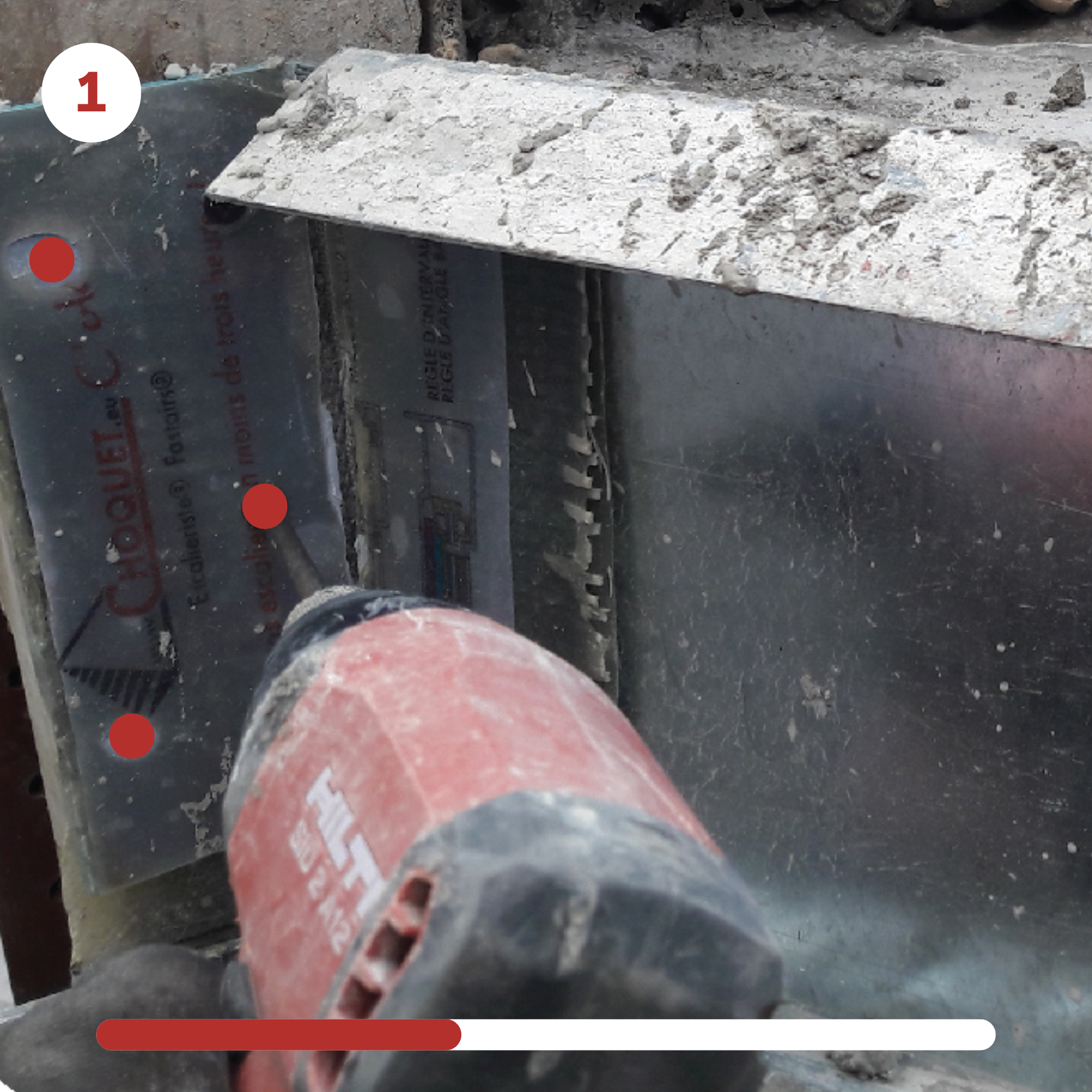 Fixer la platine solo sur mur ou coffrage latéral côté angle aigu